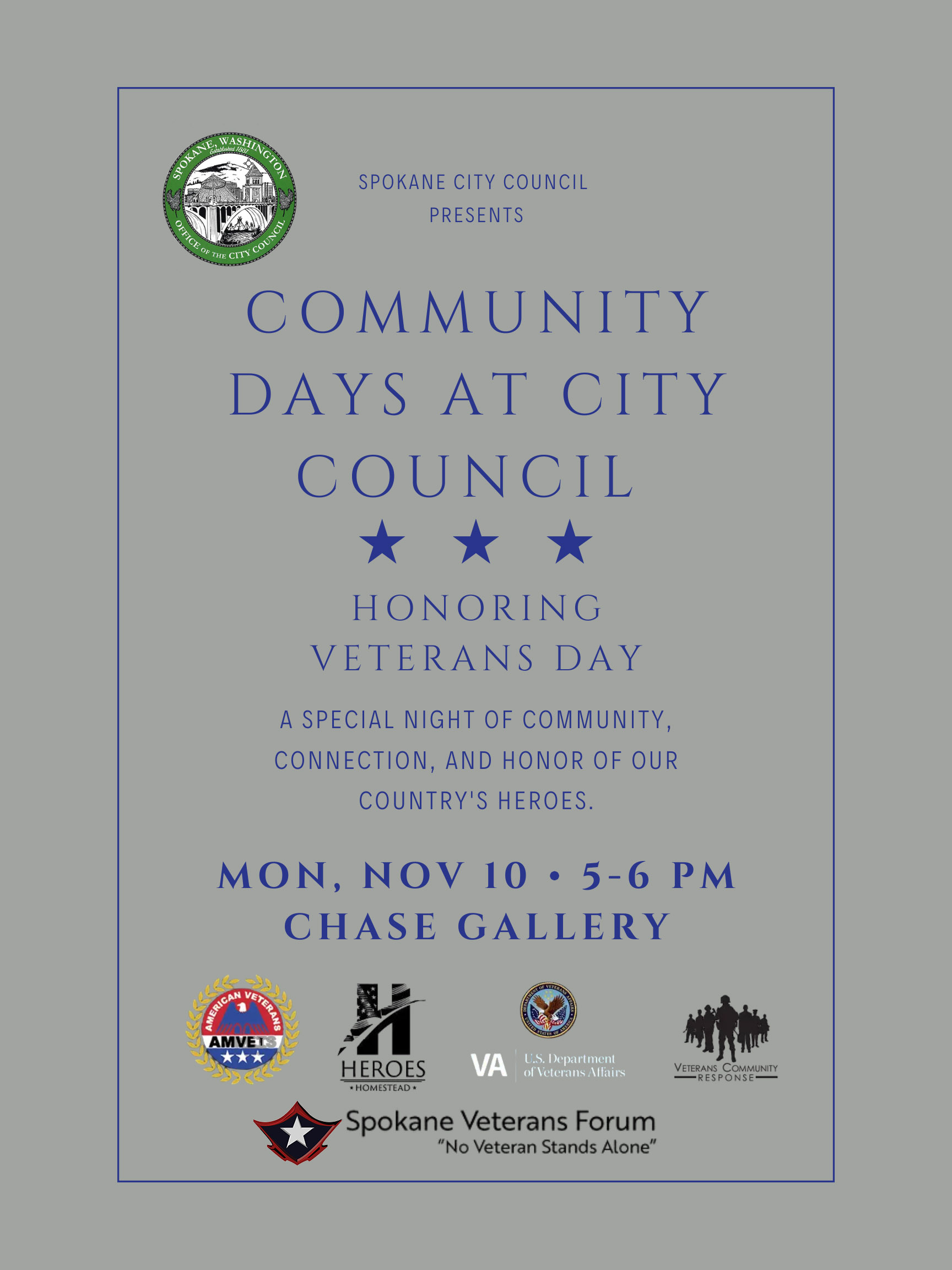 Spokane City Council will host Community Days to honor our country’s heroes and celebrate those who support them.