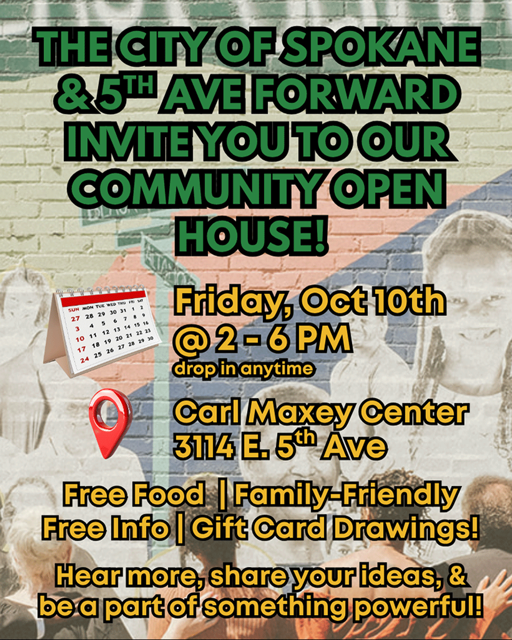 Join the City and the newly launched 5th Avenue Forward for a community open house for residences and local businesses on Friday, October 10 at the Carl Maxey Center (3114 E. 5th Avenue), drop in anytime between 2 - 6 p.m. Come learn about the City and community work going on, connect with neighborhoods, share your ideas, and be a part of something powerful. Take a pre-open house survey online!